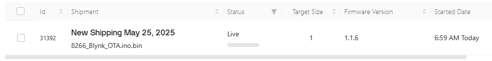 Hi Pete, Thanks for your previous recent help for this newbie. I used your sketch. I had an initial headache that ESP8266Ping.h didn’t show up in the library manager of IDE 2.3.5 but I got passed that by finding it on github and installed it locally. (I deleted that post when I figured that out.) Anyway it work! Well it worked the first time. In setup I have it Serial.println("Setup Complete Version: " + String(BLYNK_FIRMWARE_VERSION)); and of course it did it with the original when I initially uploaded it to my 8266. And then the first time I shipped an update with the incremented version number it worked! From Version 1.1.4 to 1.1.5. However it only worked once. Every time since then I get I get a “live” status and it never gets to finished.