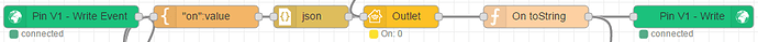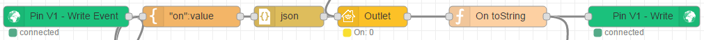 [{"id":"cafa6165.75fb2","type":"blynk-websockets-in-write","z":"22ab1451.c65d5c","name":"","pin":"1","client":"2fa4f650.84b19a","x":110,"y":120,"wires":[["a2719851.de8bb8","12fc129c.477855"]]},{"id":"a2719851.de8bb8","type":"template","z":"22ab1451.c65d5c","name":"\"on\":value","field":"payload","fieldType":"msg","format":"handlebars","syntax":"mustache","template":"{\"On\":{{payload}}}","x":290,"y":120,"wires":[["81a07c29.0f3c7"]]},{"id":"81a07c29.0f3c7","type":"json","z":"22ab1451.c65d5c","name":"","x":430,"y":120,"wires":[["d6a28a0e.b209c8"]]},{"id":"d6a28a0e.b209c8","type":"homekit-service","z":"22ab1451.c65d5c","accessory":"5c1a3f3.55c7fc","name":"","serviceName":"Outlet","x":550,"y":120,"wires":[["dd481e95.f5fa5"]]},{"id":"c00e818b.3a24d","type":"blynk-websockets-out-write","z":"22ab1451.c65d5c","name":"","pin":"1","client":"2fa4f650.84b19a","x":940,"y":120,"wires":[]},{"id":"dd481e95.f5fa5","type":"function","z":"22ab1451.c65d5c","name":"On toString","func":"msg.payload = msg.payload.On.toString();\nreturn msg;","outputs":1,"noerr":0,"x":730,"y":120,"wires":[["c00e818b.3a24d","8b839cf0.44b4d"]]},{"id":"2fa4f650.84b19a","type":"blynk-websockets-client","z":"","name":"Outles","path":"ws://BLYNK_SERVER:8082/websockets","key":"BLYNK_TOKEN "},{"id":"5c1a3f3.55c7fc","type":"homekit-accessory","z":"","accessoryName":"zasuvka","pinCode":"111-11-111","port":"","manufacturer":"fisero","model":"Blynk relay","serialNo":"001","accessoryType":"7"}]