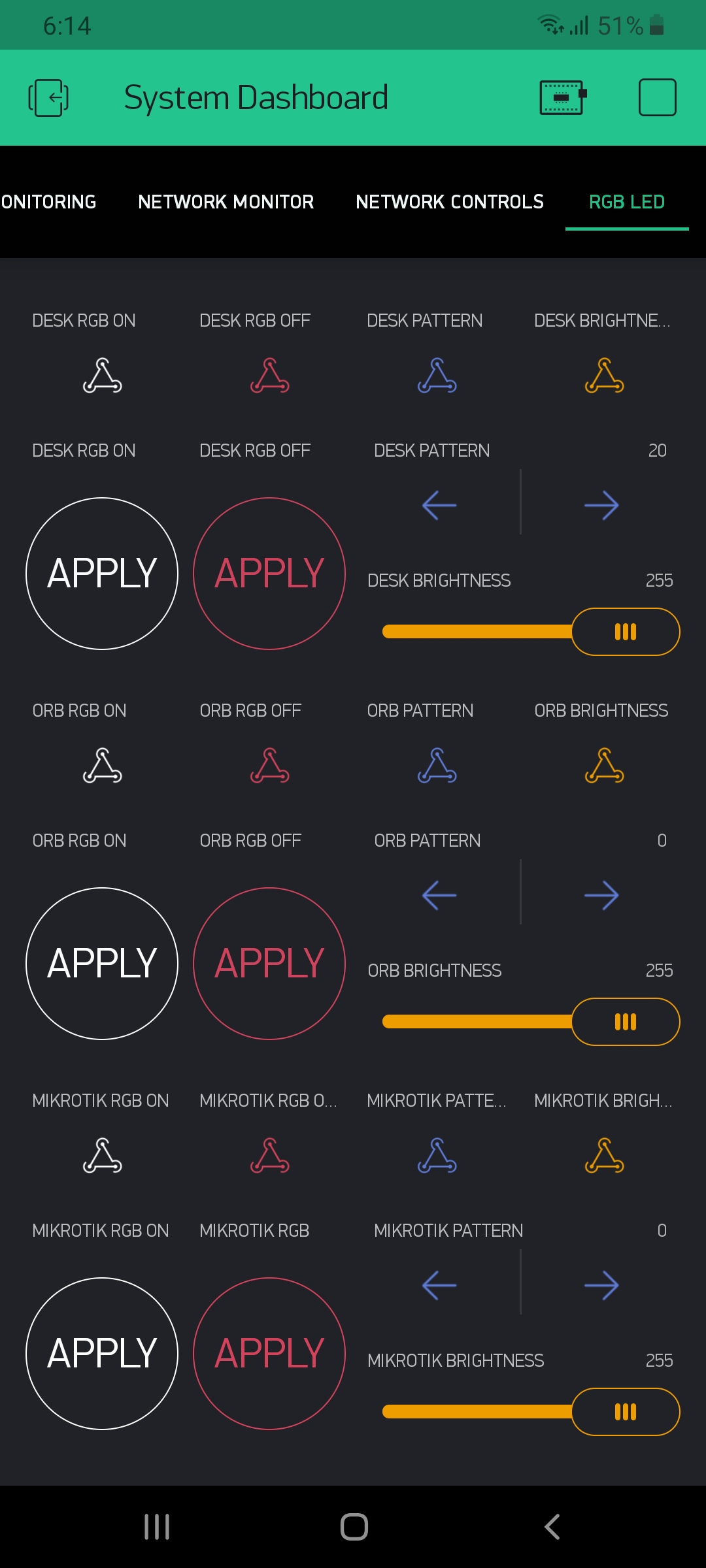 testing the RGB controller on the MikroTik routerboard ( it’s directly connected to the 3.3 volt routerboard regulator ):