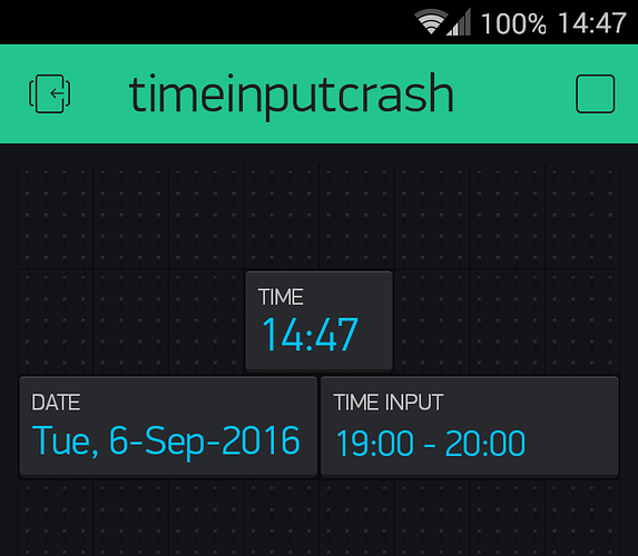 just using Time Input Widget couple days now and experiencing system crash whenever I open/change the value of the widget, this is the trace on my serial: